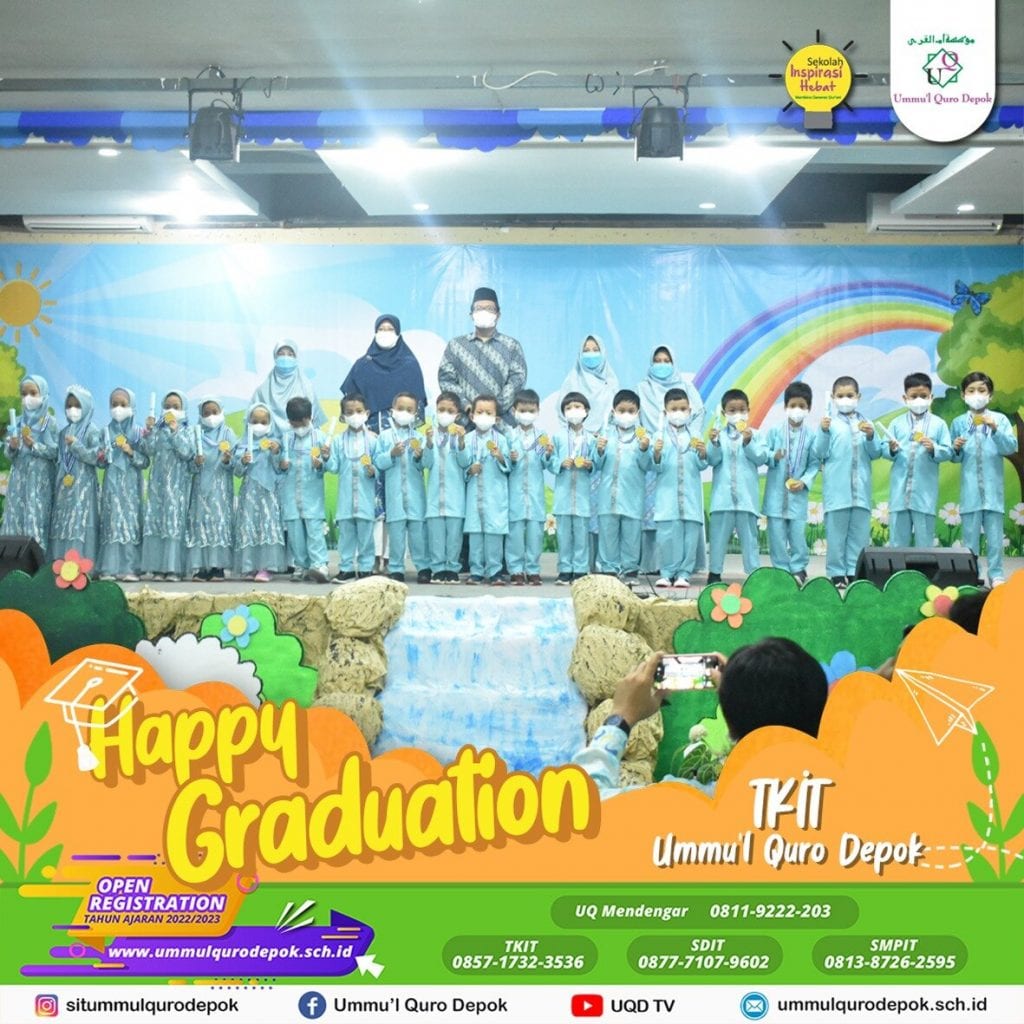 Depok (18/06) – Taman Kanak-kanak Islam Terpadu (TKIT) Ummu’l Quro Depok menggelar wisuda untuk TK B Tahun Pelajaran 2021/2022, di Aula Yayasan Ummu’l Quro Depok, Beji, Depok, Sabtu, (18/06/22) Wisuda diikuti oleh 39 lulusan yang berasal dari TK B, dengan mengusung tema “Mensyukuri Indahnya Pesona Alam ini Bersama Generasi Hebat dan Menginspirasi” Wisuda yang di […]