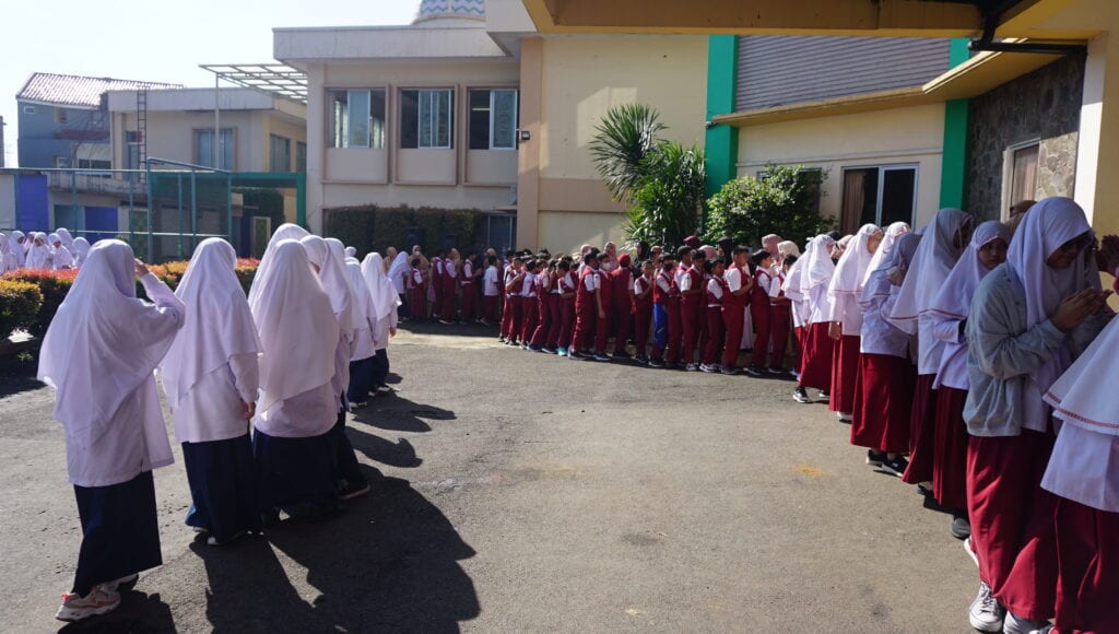 Kegiatan halalbihalal di lapangan SMPIT Ummu’l Quro Depok