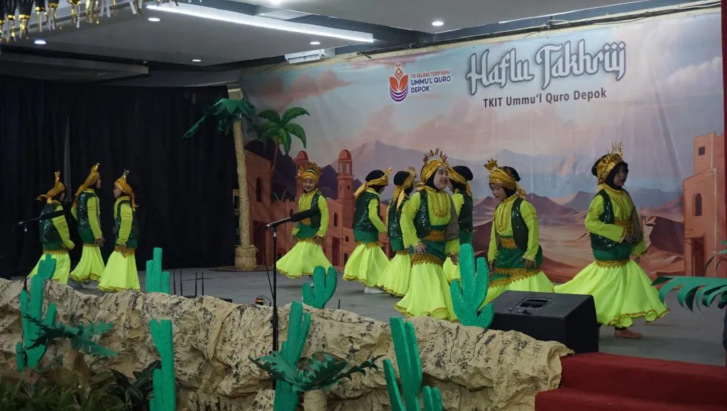 Tampilan siswa memeriahkan acara Haflu Takhriij TKIT Ummul Quro Depok Angkatan 28