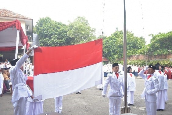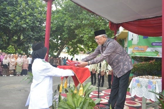 Pengibaran Bendera Merah Putih dipimpin oleh Pemimpin Upacara Bapak Rochmansyah, S.Pd serta Penghargaan Guru Inovasi