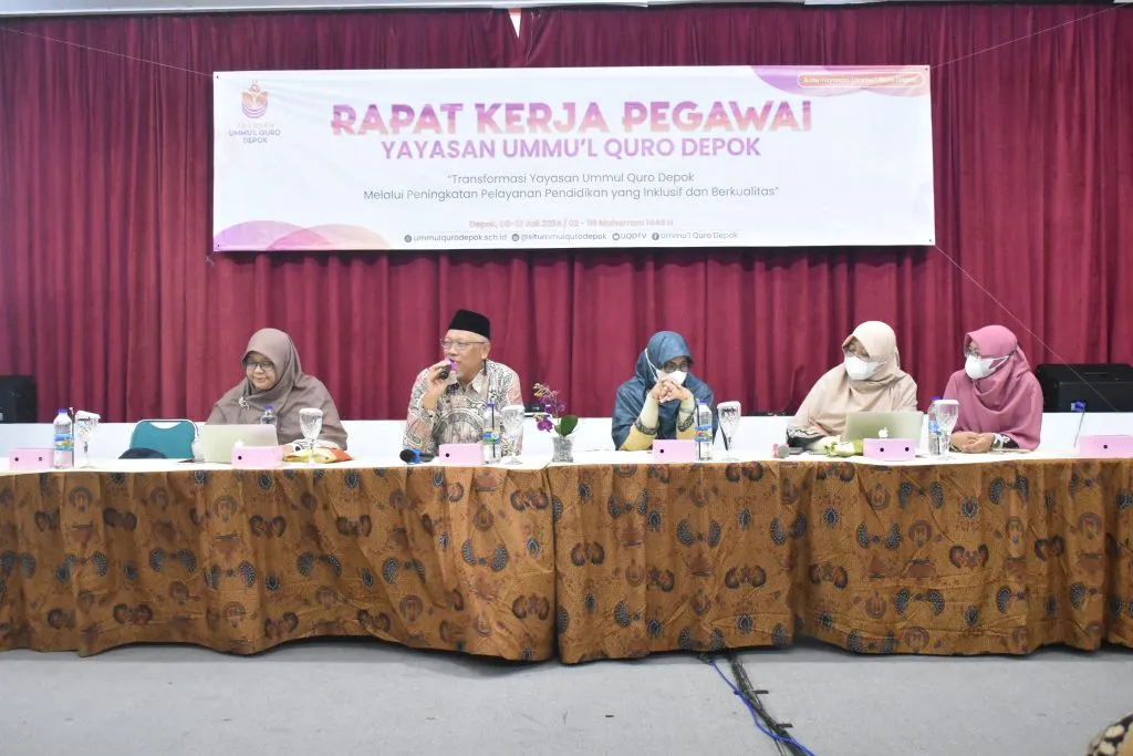 DEPOK – Alhamdulillah SIT Ummu’l Quro Depok menggelar Rapat Kerja Pegawai Yayasan Ummu’l Quro Depok Tahun Pelajaran 2024/2025 yang secara langsung dipimpin oleh Dewan Pembina Yayasan UQD Ustadz K.H. Ali Fikri, Lc, M.A di aula SIT dengan tema “Transformasi Yayasan Ummu’l Quro Depok melalui Peningkatan Pelayanan Pendidikan yang Inklusif dan Berkualitas”, Kamis (10/7).