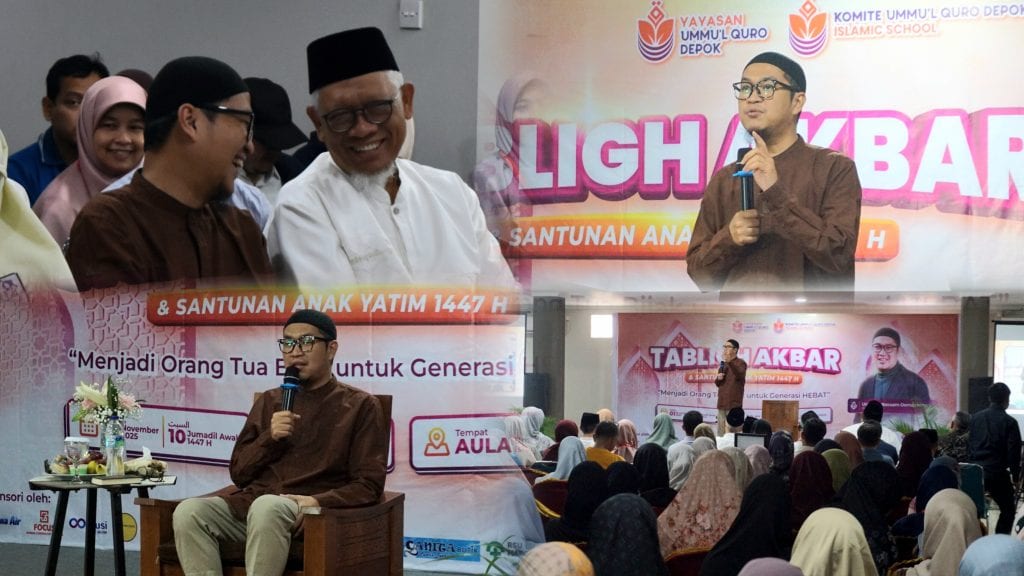 Depok (01/11/2025) – Alhamdulillah, puji syukur kehadirat Allah Subhanahu wa Ta’ala, atas limpahan rahmat-Nya sehingga pada Sabtu (01/11/2025) telah terlaksana kegiatan Tabligh Akbar & Santunan Anak Yatim 1447 H yang diselenggarakan di Aula Ummul Quro Depok Islamic School.